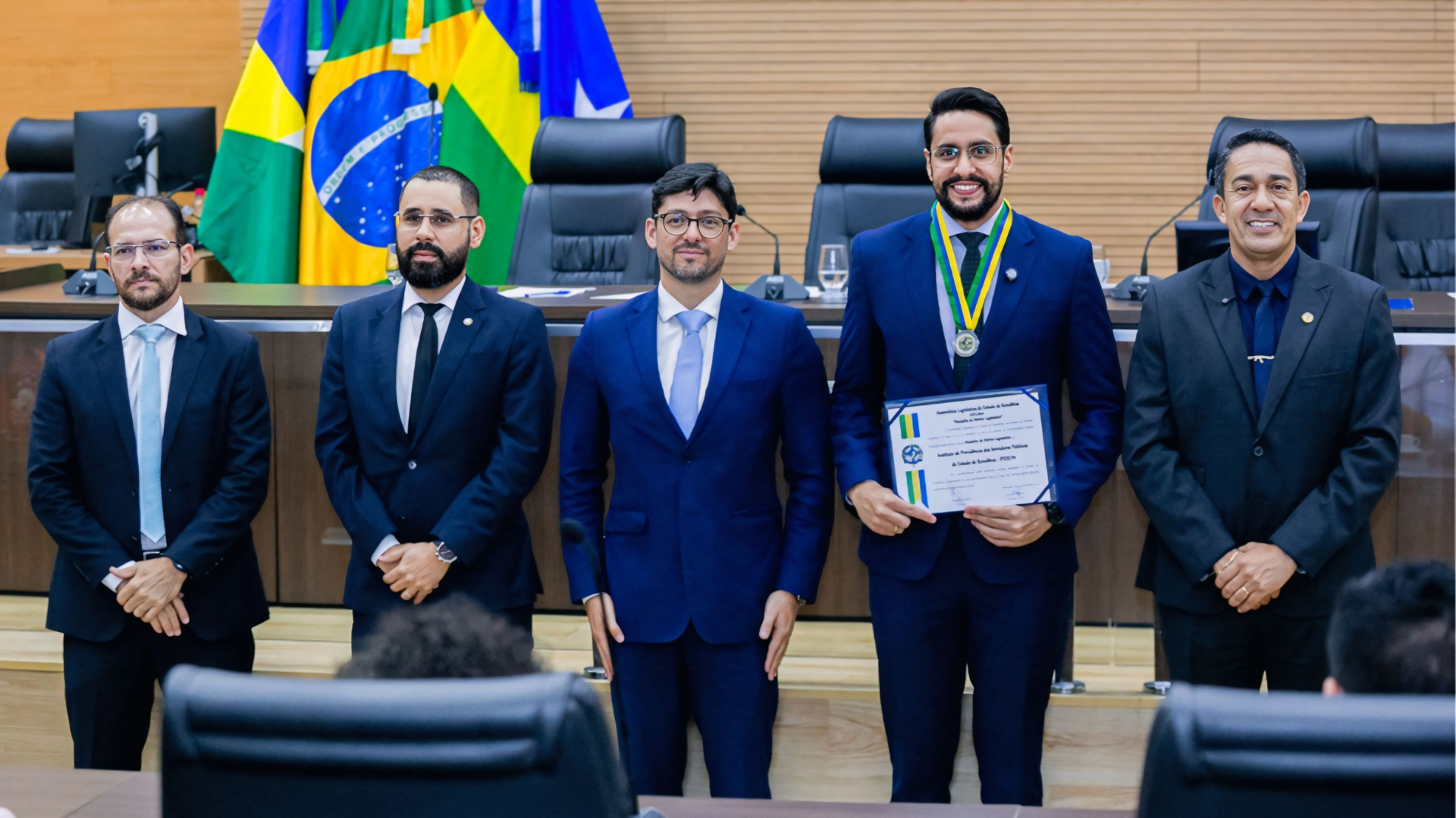 A Procuradoria Geral do Estado de Rondônia (PGE-RO) participou, na última segunda-feira (3), da cerimônia de entrega da Medalha do Mérito Legislativo, promovida pela Assembleia Legislativa de Rondônia (ALERO) em homenagem ao Instituto de Previdência dos Servidores Públicos do Estado de Rondônia (IPERON). A solenidade, realizada no Plenário da Casa de Leis, reconheceu os relevantes serviços prestados pelo Instituto à sociedade rondoniense e à gestão pública previdenciária do Estado.